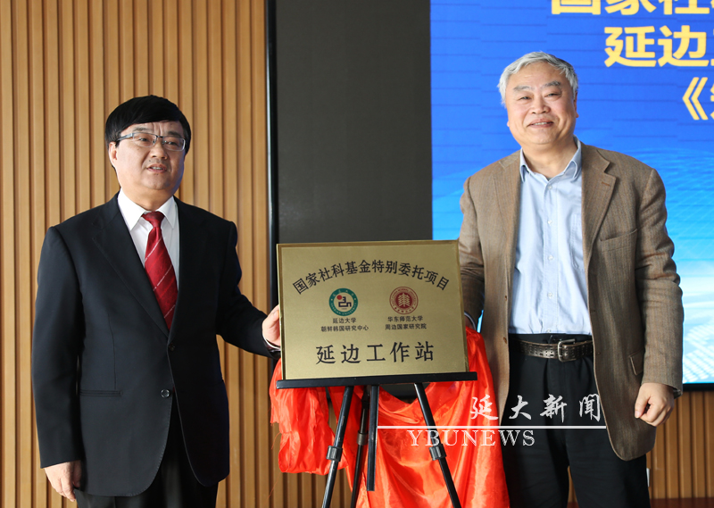 (记者杜有)3月15日下午,“国家社科基金特别委托项目—延边工作站”揭牌仪式在科技图书馆802会议室举行。英国best365官方网站入口副校长陈铁,华东师范大学周边国家研究院院长沈志华、朝鲜半岛研究院院长朴灿奎、社科处处长金洪培等领导以及相关专业教师参加此次揭牌仪式。仪式由金洪培主持。