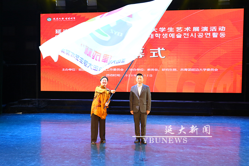 开幕式在嘹亮的国歌声中拉开帷幕。于金欢为校美育教育工作委员会授旗,校美育教育工作委员会主任、艺术学院院长崔玉花接旗并发言。